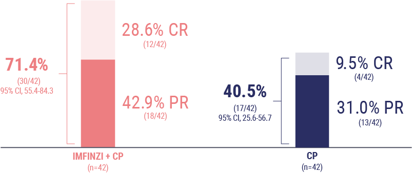 The objective response rate (ORR) was 71.4% in the IMFINZI + CP arm and 40.5% in the CP arm.